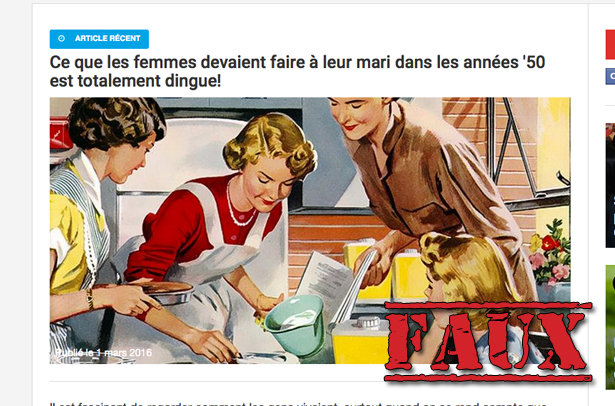 C’est que plusieurs (centaines de) sites publient des extraits d’un «guide de la bonne épouse», supposément publié dans le magazine américain Housekeeping Monthly (Magazine mensuel de la femme au foyer). On peut y lire toute une gamme de précieux conseils pour les dames qui veulent plaire à leur mari (puisqu’en 1950, c’était bien sûr le seul but d’une femme), tels que: