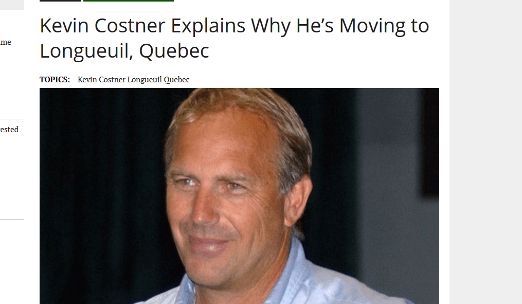 Un lecteur a envoyé à l’inspecteur viral cet article, intitulé «Kevin Costner explique pourquoi il déménage à Longueuil, au Québec».