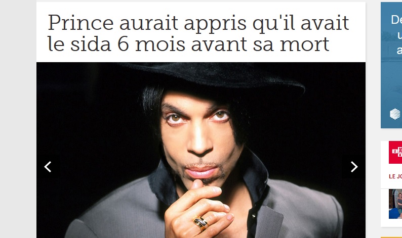 Voici que, depuis jeudi, plusieurs articles affirment que Prince aurait en fait appris qu’il avait le sida six mois avant sa mort, et que ses croyances de Témoin de Jéhova l’auraient poussé à refuser tout traitement.