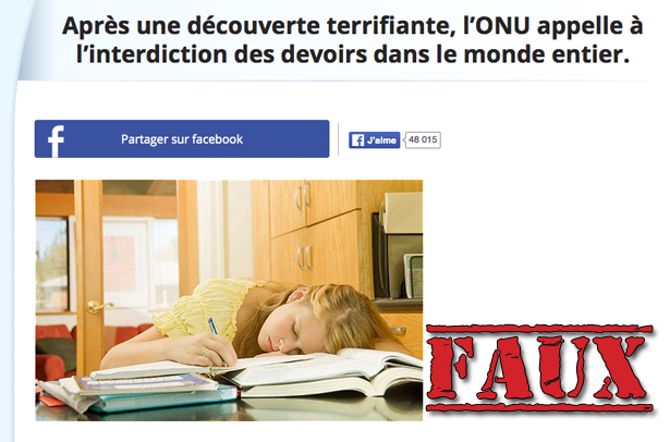 Plusieurs lecteurs de l’inspecteur lui ont envoyé cet article, repris ensuite par notre ami Keven Roy (bien sûr…), qui explique que, à la suite d’une «découverte terrifiante», l’Organisation mondiale de la santé (OMS), un organisme de l’Organisation des nations unies (ONU), encourage tous les systèmes scolaires du monde à abandonner les devoirs.