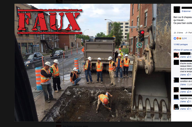 Eh oui, huit «chapeaux blancs» (que plusieurs associent avec des ingénieurs de la Ville) qui regardent un seul jeune travailler dans un chantier montréalais. Dans ce cas-ci, ce qu’on «savait déjà», c’est qu’il y a énormément de gaspillage de ressources (humaines et autres) dans la gestion des chantiers à Montréal. Cette photo vient tout simplement confirmer ce constat. «Ça peut ben coûter chère clissssssssssssss», en effet!