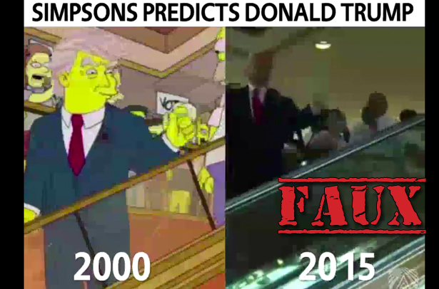 Ça serait vraiment impressionnant si la vidéo des Simpson n’avait pas été produite en juillet 2015, soit un mois après la vraie vidéo de Trump. Oups.