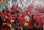 Le reste de l’équipe canadienne a fait son entrée dans l’impressionnant stade quelques minutes plus tard, vêtu de manteaux rouges et de mitaines en dansant et en prenant des photos avec les athlètes d’autres pays.