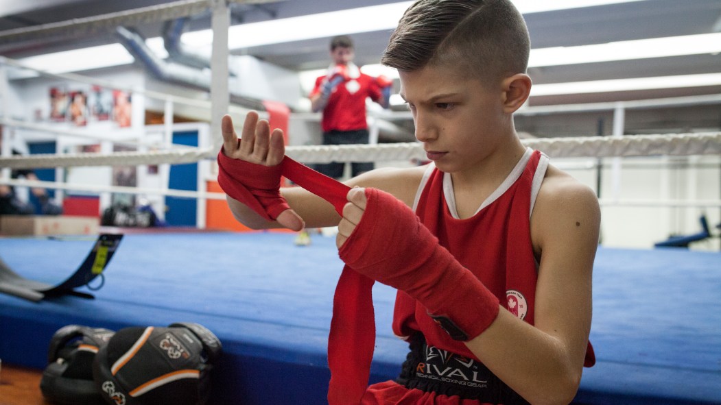 Vainqueur récemment des Gants d’argent du Québec, Salvatore Rufolo détonne. Au milieu d’une dizaine de boxeurs chevronnés, gilet rouge du Canada sur les épaules, le jeune blondinet enchaîne les coups, tout seul, sur l’un des nombreux sacs du club de boxe Champions, dans le quartier de Rosemont.