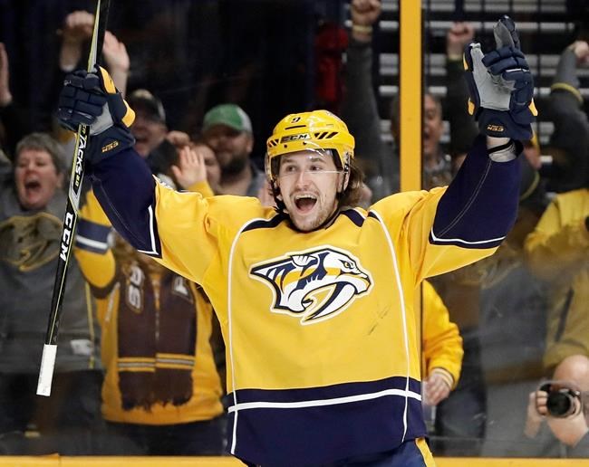NEW YORK — L’ailier gauche Filip Forsberg des Predators de Nashville a brillé de mille feux en récoltant huit buts, dont deux tours du chapeau, et 10 points en quatre matchs pour s’assurer la première étoile de la semaine dans la Ligue nationale de hockey.