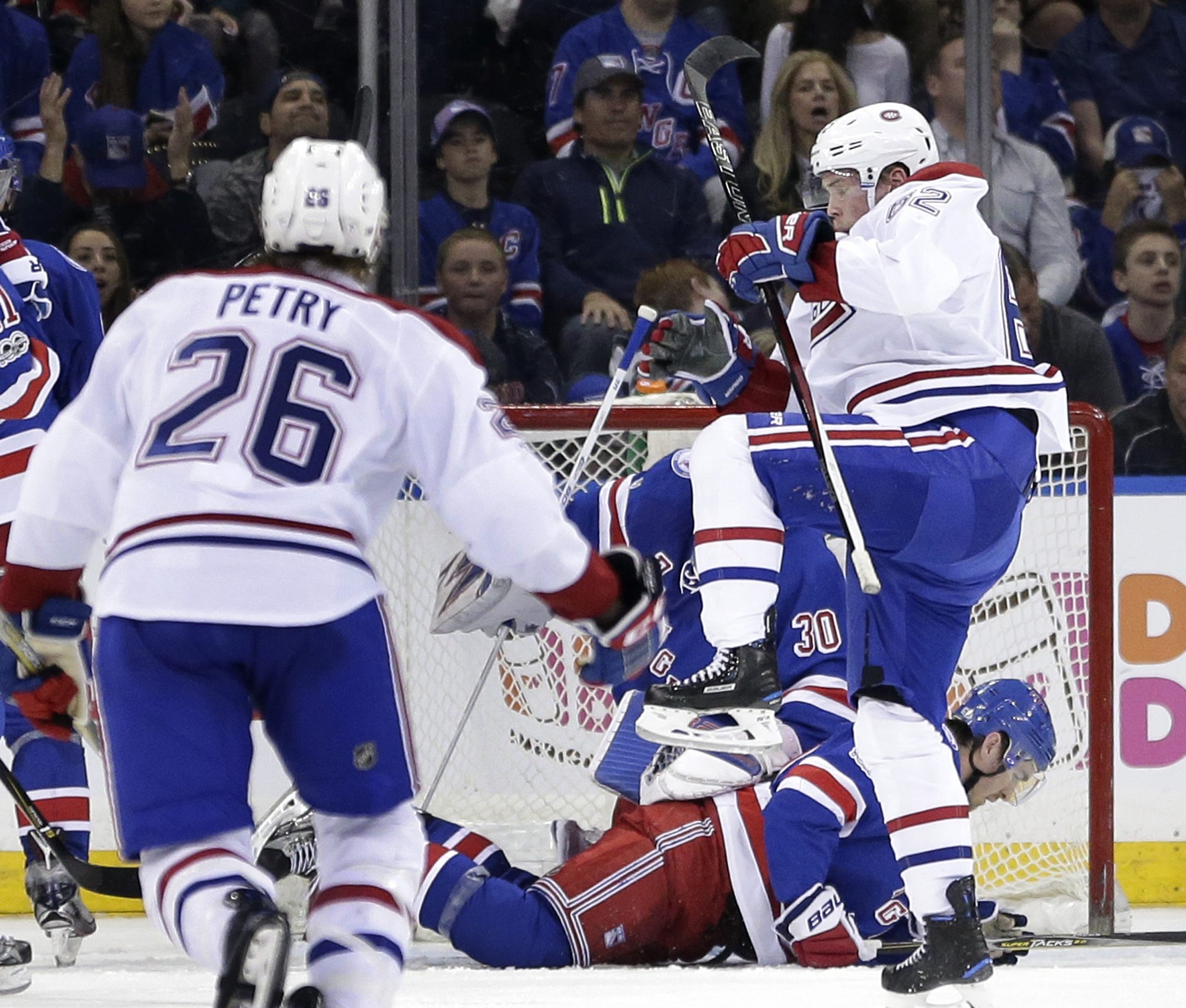 Les deux seules pénalités mineures de la première période sont allées au Canadien, à Jeff Petry et à Alex Galchenyuk, et les hommes de Claude Julien ont su tenir le coup. Plusieurs joueurs ont été appelés à la rescousse, tout particulièrement les défenseurs Shea Weber, Andrei Markov et Jordie Benn de même que Tomas Plekanec. Pendant l’infraction à Petry, les Rangers n’ont obtenu qu’un tir, nullement dangereux, mais ils ont mis un peu plus de pression pendant leur seconde opportunité. Rick Nash est venu près de rompre l’impasse, mais son tir, alors qu’il était posté à l’embouchure du filet du Canadien, a raté la cible de peu.
