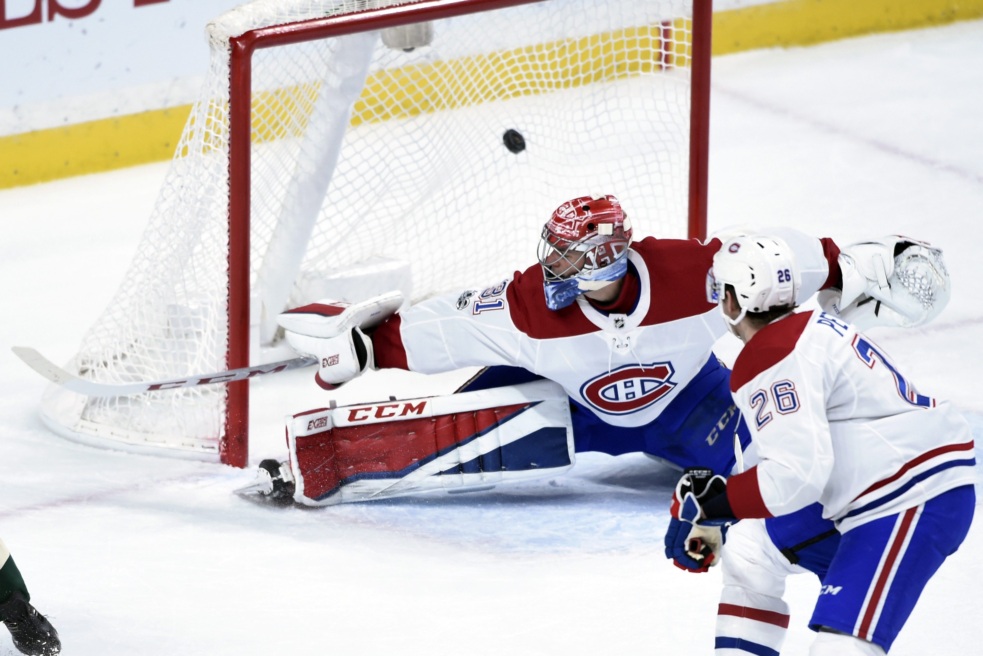 Les faits saillants• Carey Price a connu un début de rencontre chancelant. Moins de cinq minutes après la première mise en jeu, il a accordé un retour juteux avant de rater son déplacement, ce qui a permis à Matt Cullen de faire mouche. Quelques secondes plus tard, il a tenté un dégagement, intercepté par Matt Dumba. Le tir de loin de ce dernier s’est frayé un chemin dans le filet. • Dans les premiers instants de la rencontre, il avait failli céder, mais il a joué de chance. Eric Staal a tiré faiblement. Price a été incapable de maîtriser le disque, qui a glissé lentement derrière lui. Nino Niederreiter a toutefois été incapable de le pousser dans le filet. • Andrew Shaw a enfin marqué son premier but de la saison, en troisième période grâce à une belle passe de Phillip Danault. Max Pacioretty a rendu cette action possible avec son travail derrière le filet adverse. |
