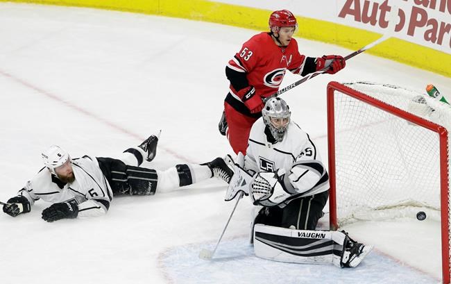 Les Hurricanes ont dominé 41-30 au chapitre des tirs aux buts. Jonathan Quick a fait face à 20 tirs et concédé quatre buts avant de céder sa place après le troisième filet de Faulk.