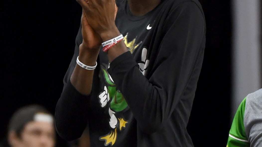 LAS VEGAS, NV - MARCH 11: Chris Boucher #25 of the Oregon Ducks claps on the bench during the championship game of the Pac-12 Basketball Tournament against the Arizona Wildcats at T-Mobile Arena on March 11, 2017 in Las Vegas, Nevada. (Photo by Ethan Miller/Getty Images) Photo: Getty Images