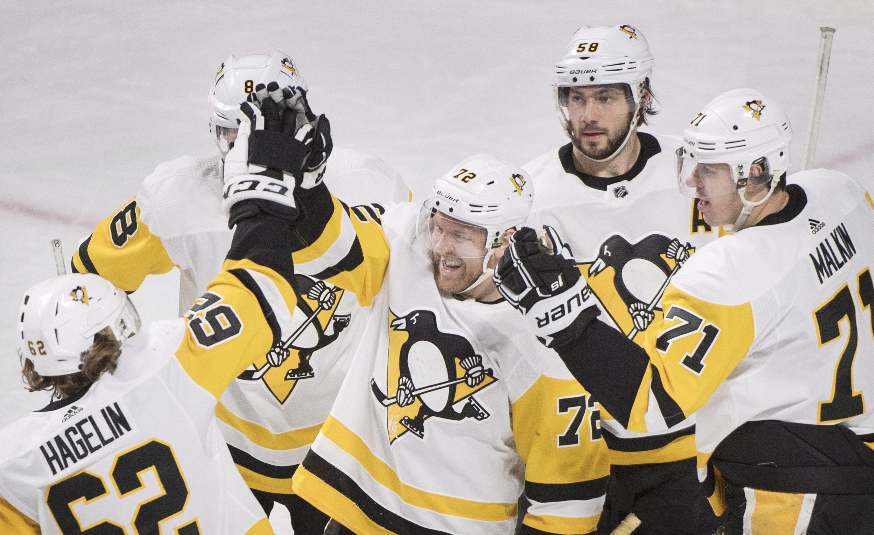 Hornqvist, qui totalise 22 buts, avait d’abord permis à son équipe d’effacer un déficit de 0-2 au premier vingt. Il a ajouté un troisième point avec un peu moins de deux minutes à jouer en temps réglementaire, en récoltant une mention d’aide sur le but de Bryan Rust (12e) dans un filet désert.