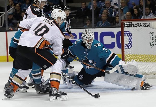 SAN JOSE, Calif. — Tomas Hertl a brisé l’égalité à mi-chemin en troisième période, Martin Jones a réalisé 30 arrêts et les Sharks de San Jose ont complété le balayage de leur série de premier tour de l’Association de l’Ouest face aux Ducks d’Anaheim en l’emportant 2-1, mercredi.
