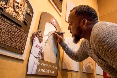 «Je suis heureux et les gens autour de moi sont heureux, a déclaré le Dominicain de 43 ans jeudi, dans la Hall des plaques, à la conclusion de sa visite guidée du Temple. Je suis évidemment le premier de ma ville à être admis ici, mais aussi le premier frappeur dominicain au Temple.»