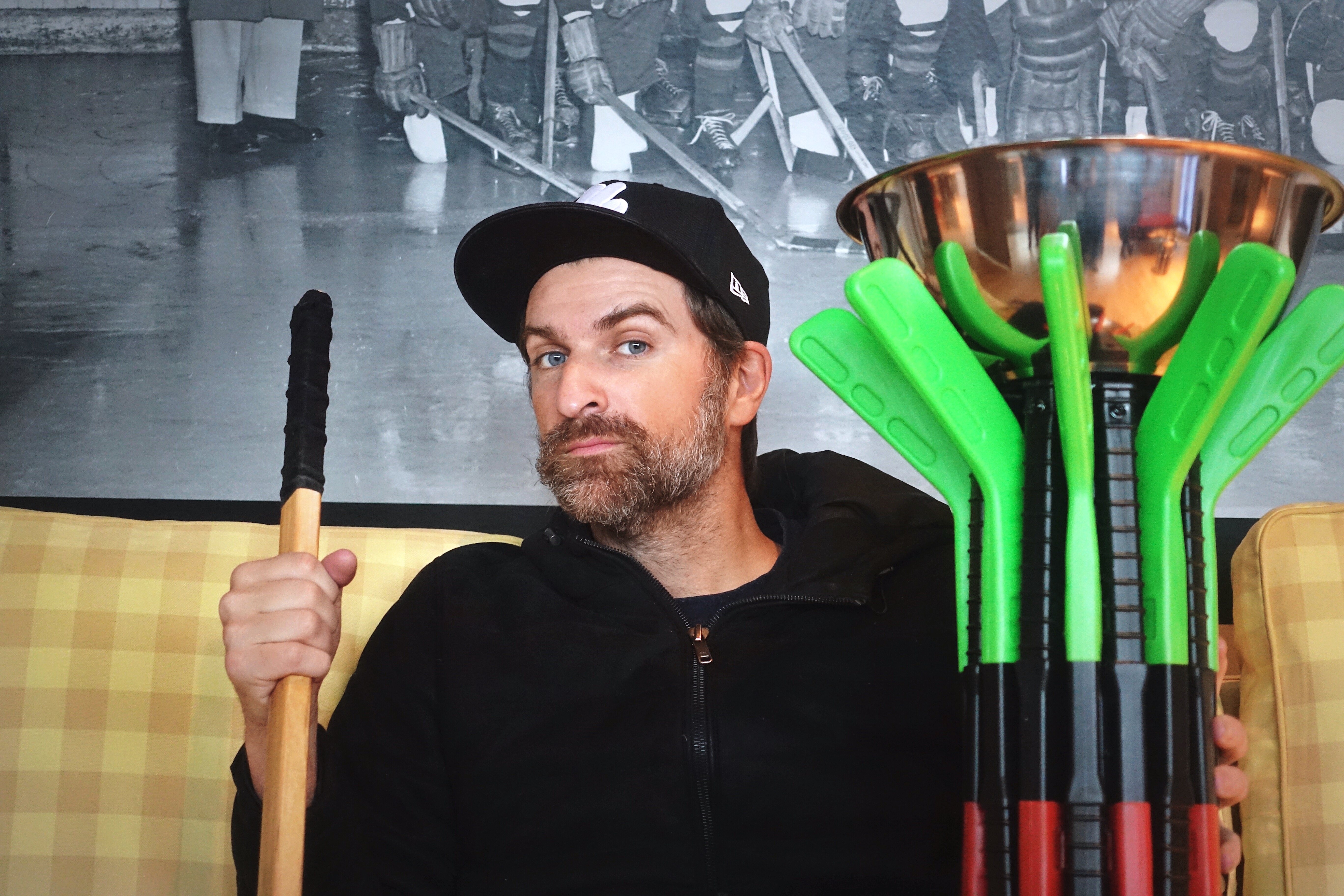 «De près ou de loin, je pense qu’on est tous un peu touchés par le hockey. J’ai de la misère à imaginer que quelqu’un ne le soit pas, d’une façon directe ou indirecte – par la bande!» – Jean-Thomas Jobin, porte-parole de l’exposition et humoriste, qui a bien l’intention de devenir une étoile de la LNH, «le premier joueur à être une recrue aux cheveux complètement blancs».