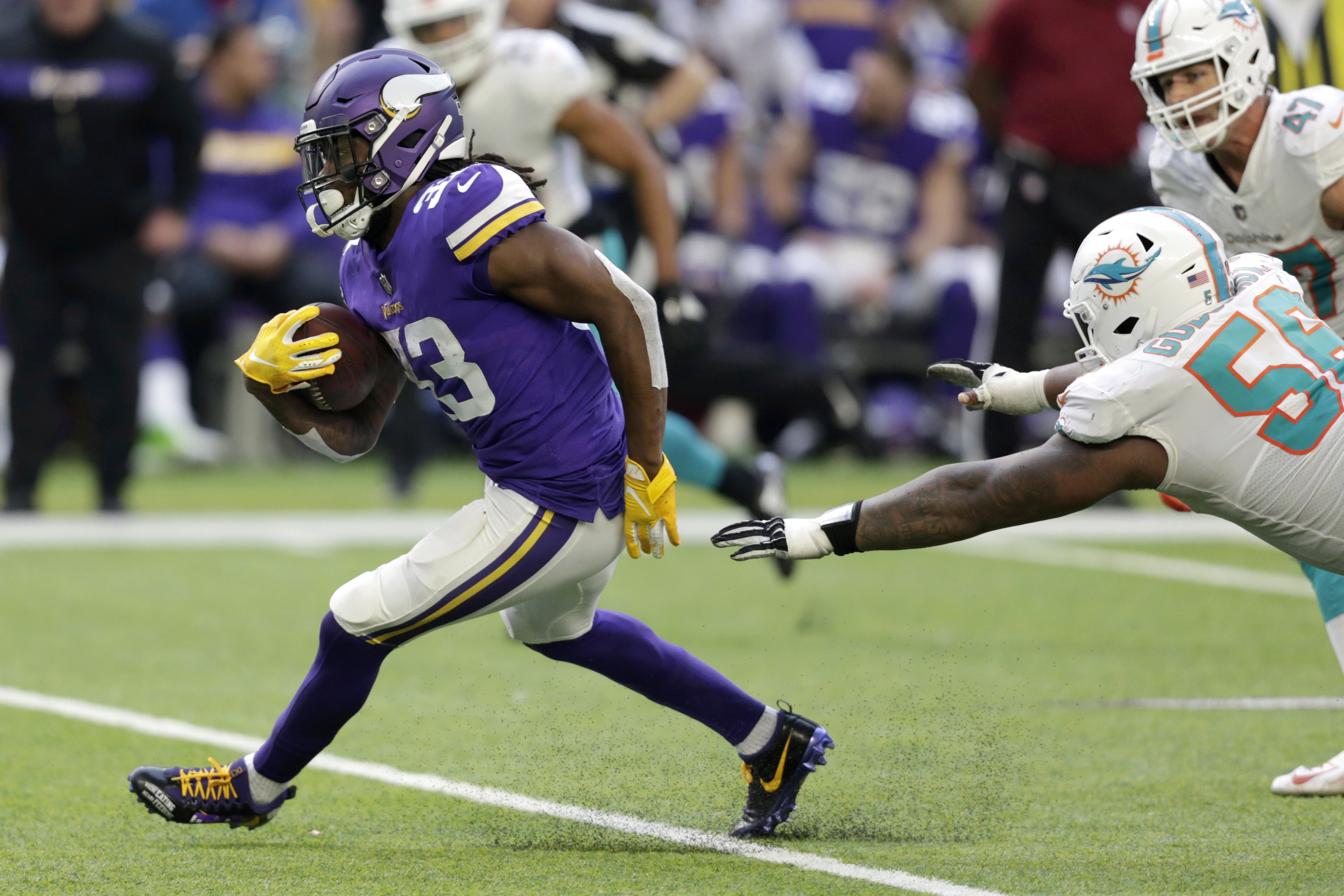 Anthony Barr et Danielle Hunter ont tous les deux réussi deux des neuf sacs aux dépens de Ryan Tannehill, qui a perdu 71 verges en tout pour les Dolphins (7-7). La troupe de Miami revenait d’une victoire dramatique contre les Patriots de la Nouvelle-Angleterre à la suite d’un touché de 69 verges ponctué de deux latérales.
