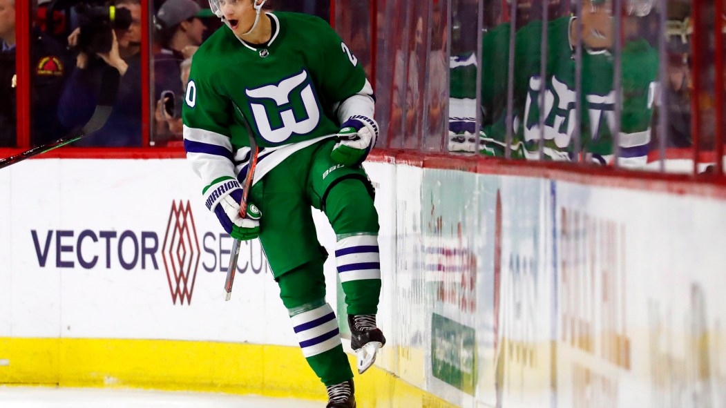 Sebastian Aho et Teuvo Teravainen ont tous les deux fait bouger les cordages à deux reprises en plus de récolter deux mentions d’aide du côté des Hurricanes, qui déambulaient sur la patinoire dans un uniforme vert à l’effigie de celui que portait les Whalers à l’époque. C’était la quatrième fois que Aho récoltait quatre points dans un match — la deuxième fois à ses cinq dernières rencontres —, alors qu’il s’agissait du troisième de Teravainen.