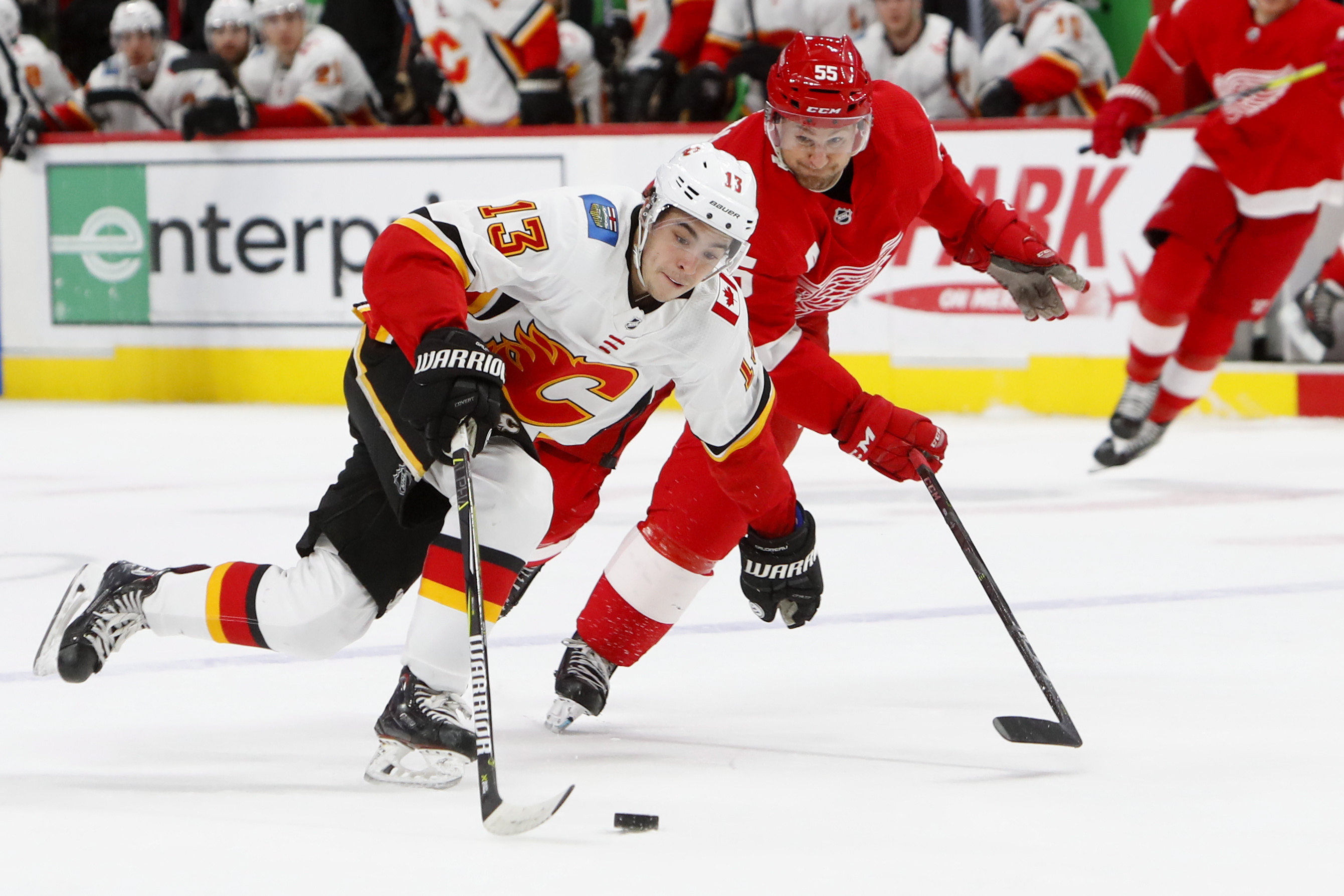 Les Red Wings menaient 2-0 après une période, mais les Flames sont venus de l’arrière pour infliger une sixième défaite d’affilée aux locaux. Sean Monahan, TJ Brodie, Elias Lindholm et Michael Frolik ont aussi noirci la feuille de pointage.