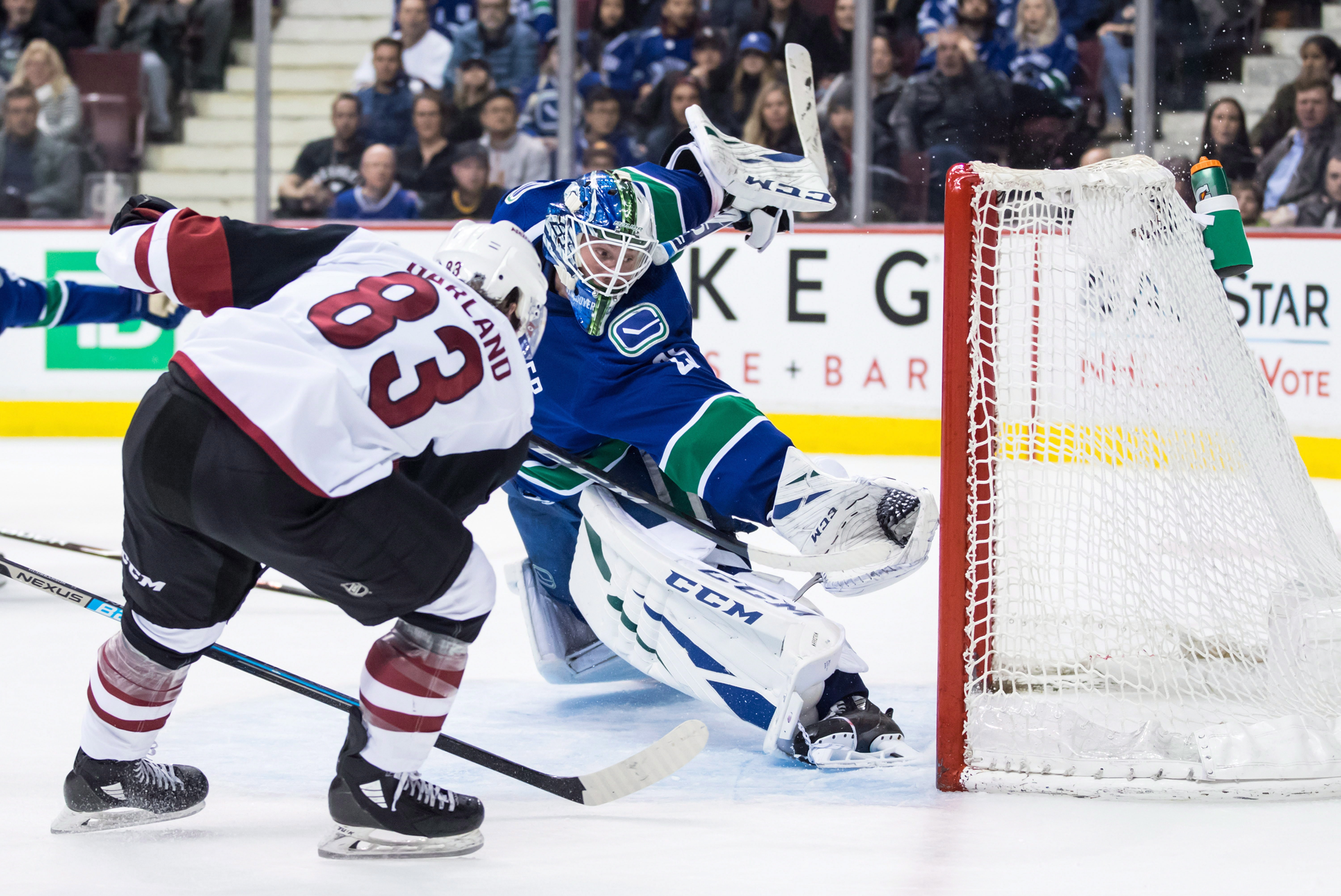 Garland a fait dévier un tir de la pointe avec son visage pour inscrire deux buts et mener les Coyotes (20-21-3) vers la victoire. Darcy Kuemper a pour sa part bloqué 25 rondelles.