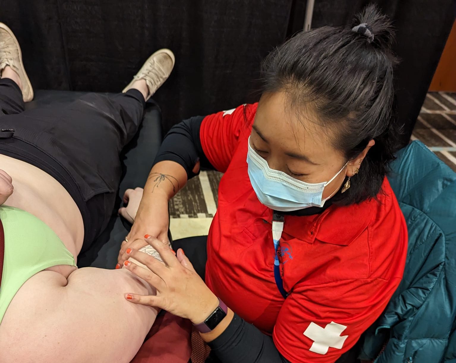 Une journée de travail aux Jeux est complètement différente de sa routine à la clinique de Pointe-Saint-Charles. «J’adore le fait de pouvoir travailler avec des athlètes et de voyager», avoue Marya.
