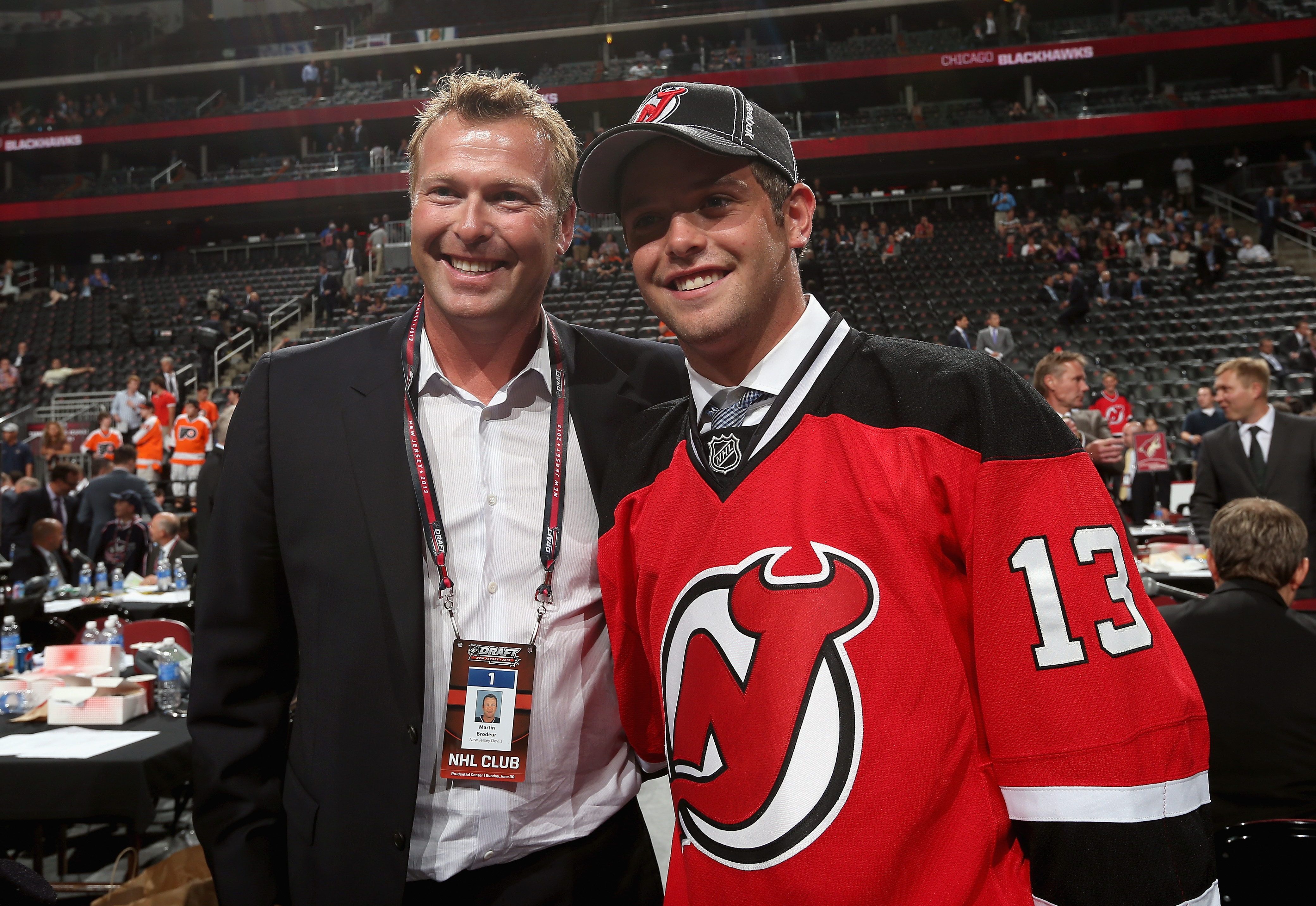 Le jeune homme de 18 ans a entendu son père prononcer son nom au 208e échelon devant quelques milliers de partisans qui ont bien apprécié le geste. Le vétéran gardien a remis le chandail des Devils à son fils avant de lui faire l’accolade.