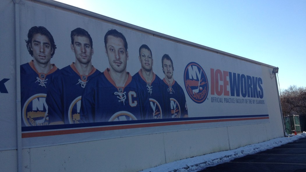 Voici l’affiche format géant qu’ont aperçu, aujourd’hui, les joueurs du Canadien à leur arrivée au Islanders Iceworks, complexe d’entraînement de l’équipe new-yorkaise.