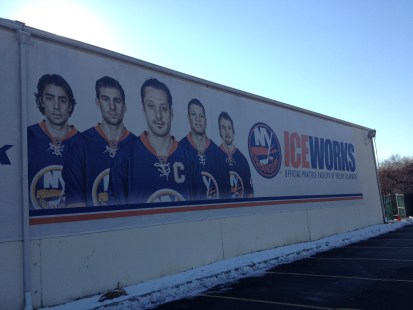 Voici l’affiche format géant qu’ont aperçu, aujourd’hui, les joueurs du Canadien à leur arrivée au Islanders Iceworks, complexe d’entraînement de l’équipe new-yorkaise.