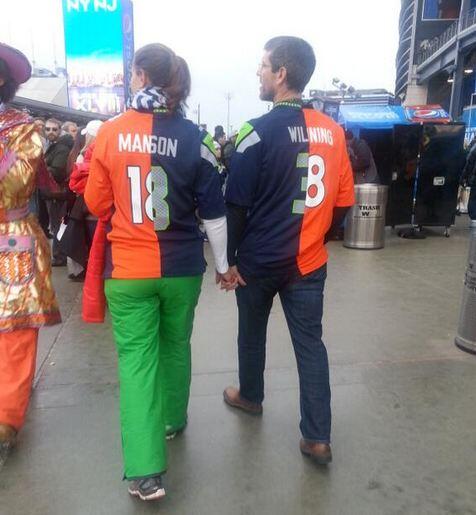 Facile! Il fallait faire comme ce couple aperçu au MetLife Stadium : déchirer vos chandails des deux équipes pour vous en »pimper » un seul!