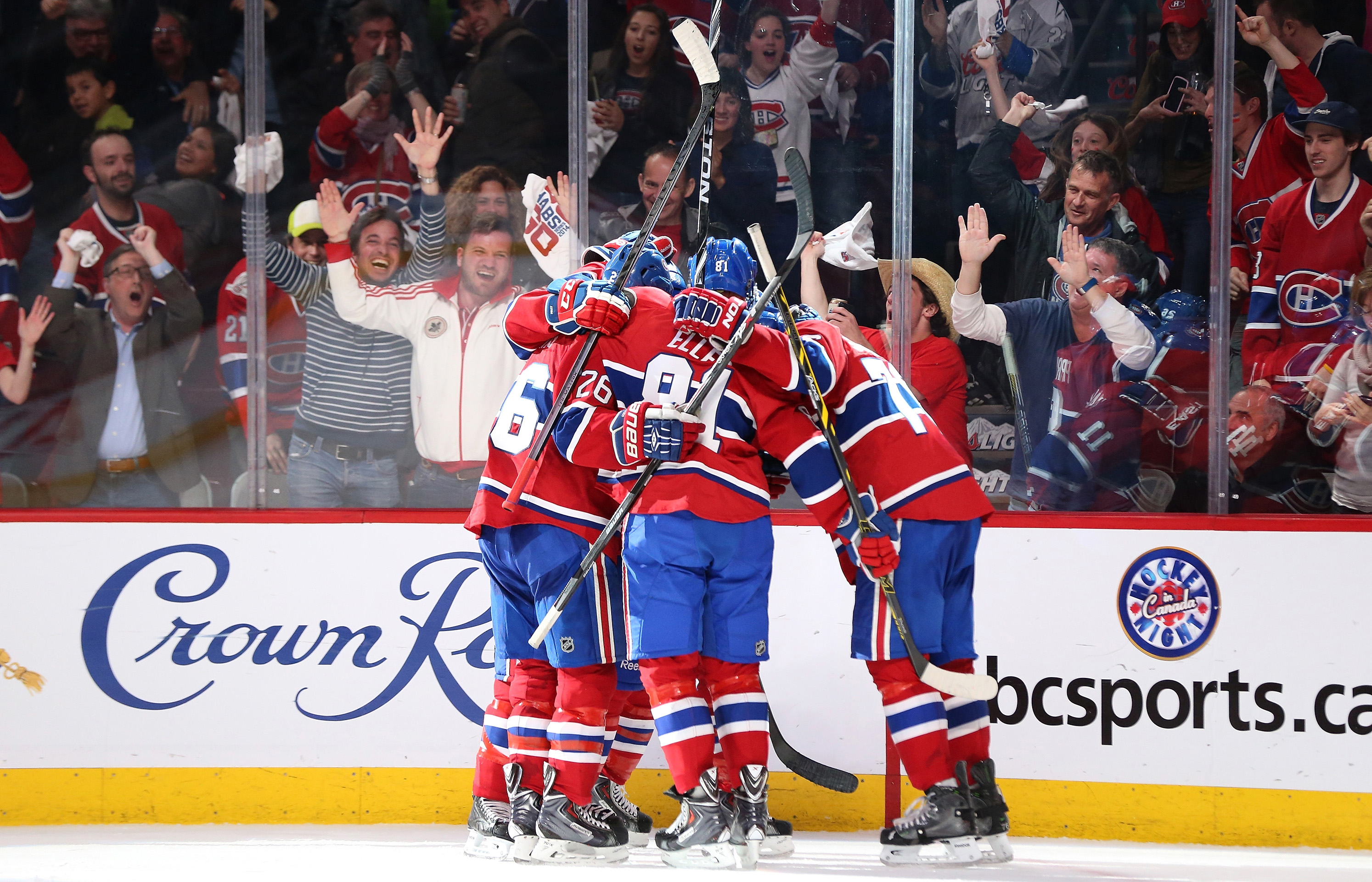 Rene Bourque, inspiré par l’interprétation du Ô Canada par Ginette Reno (ça se peut), a ouvert la marque seulement onze secondes après le début de la partie. L’attaquant a récupéré un long lobe de P.K. Subban et s’est échappé. Son tir s’est faufilé entre le bras et le corps d’Anders Lindback. Il a déjà trois buts à sa fiche depuis le début des séries, lui qui n’en a inscrit que neuf en 63 sorties cette saison.