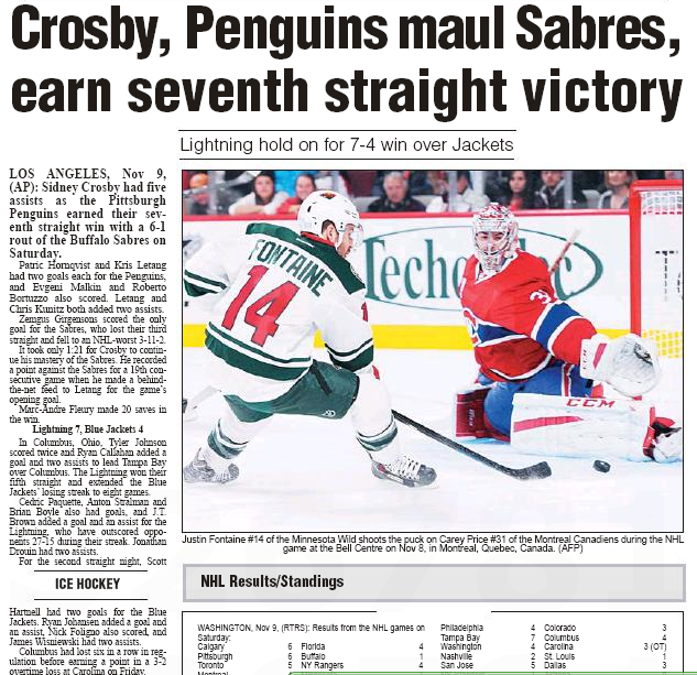Carey Price remporte la palme du joueur le plus médiatisé dans le monde avec plus de 710 mentions dans les articles des grands quotidiens du monde depuis le 8 octobre dernier, jour du premier match de la saison régulière. Cela s’explique notamment par le fait que la plupart des articles sur le hockey, en dehors des États-Unis, se concentrent sur les résumés des matchs des derniers jours. Une situation qui aide grandement le nombre de mentions d’un gardien but numéro un qui joue la majorité des matchs de son équipe.