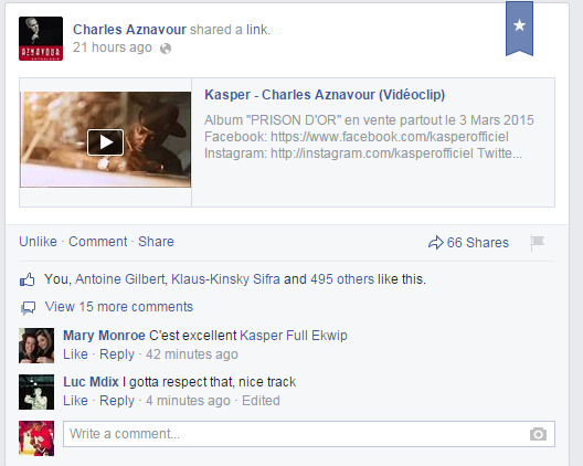 J’ai dû chanter cette chanson au moins 100 fois depuis la sortie du vidéoclip lundi et, visiblement, je ne suis pas le seul. Le grand Charles Aznavour l’a partagé hier via sa page Facebook à un million de fidèles.
