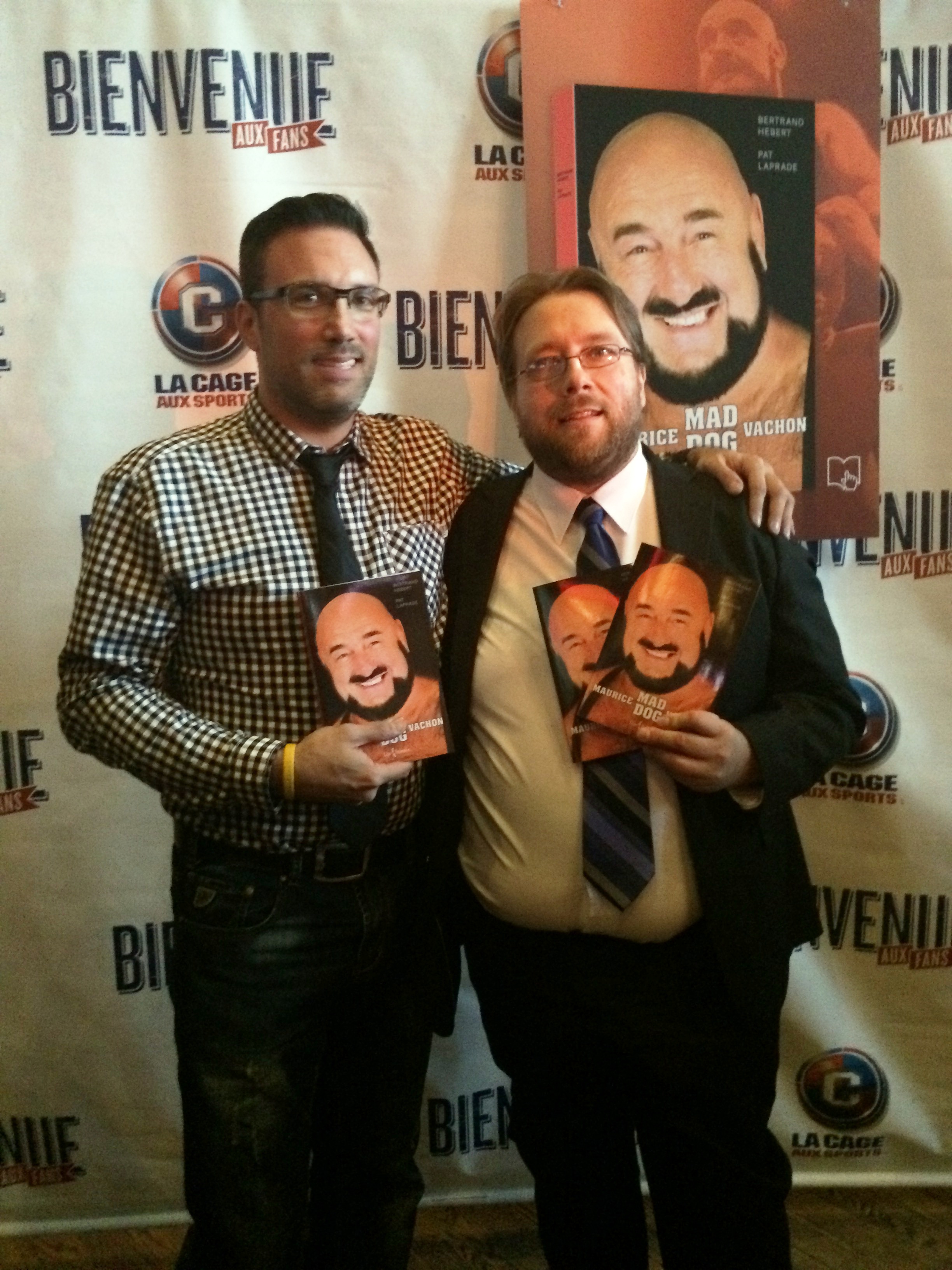 C’est devant une salle pleine d’anciens et d’actuels lutteurs, de passionnés par ce sport spectacle et de personnalités sportives que Bertrand Hébert et Patrick Laprade ont procédé au lancement de leur livre biographique racontant la vie du défunt lutteur Maurice «Mad Dog» Vachon, le mardi 31 mars à la Cage aux sports de la Place Versailles à Montréal.