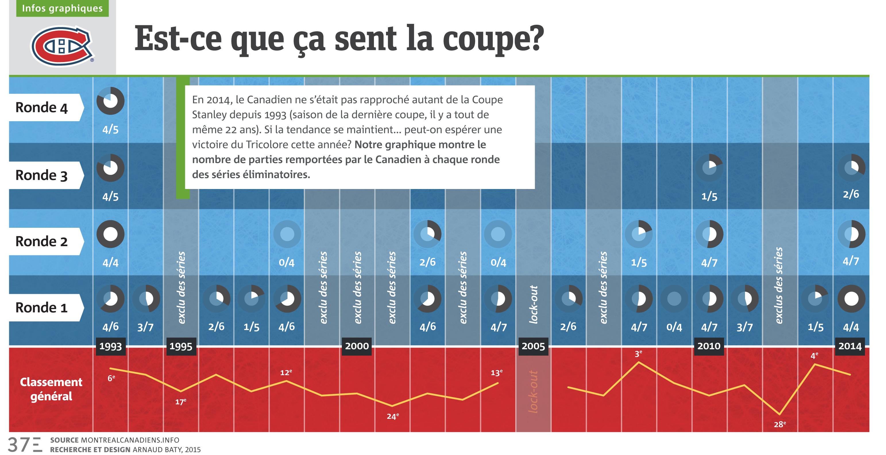 Notre graphique montre le nombre de parties remportées par le Canadien à chaque ronde des séries éliminatoires.