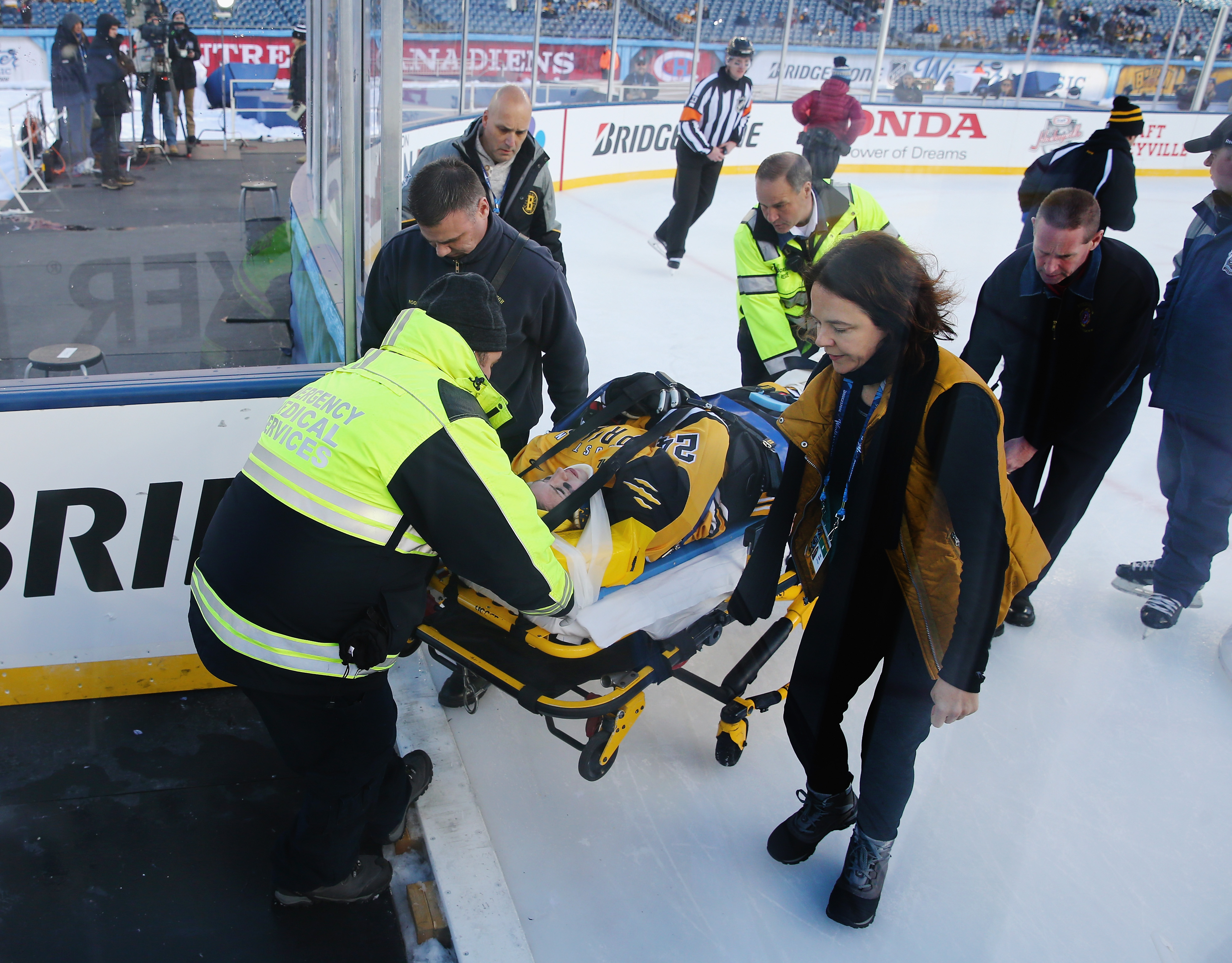 La joueuse blessée lors du match entre les Canadiennes de Montréal et le Pride de Boston dans le cadre de la Classique hivernale n’a toujours pas de sensation dans les jambes.