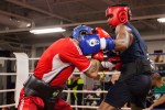 Sous l’œil attentif de l’entraîneur, le champion canadien de boxe, poids moyens, Fancis Lafrenière échange coups, astuces et techniques avec les autres protégés des frères Grant.