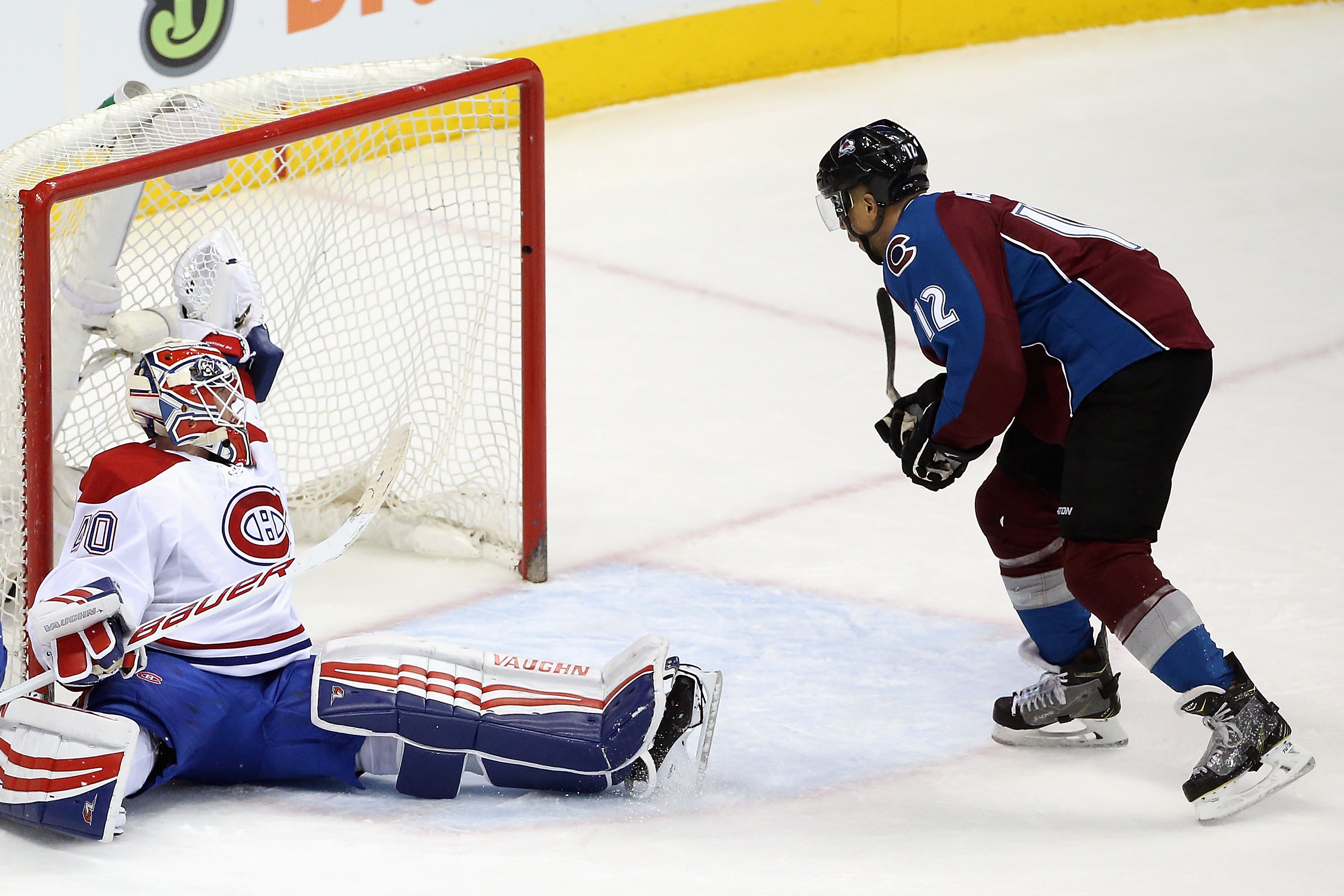 Les faits saillants• En deuxième période, Jarome Iginla a été puni et s’est fait refuser un but pour avoir fait de l’obstruction sur Ben Scrivens. À la reprise, on a pu constater que le portier du Tricolore s’était «aidé» pas mal sur la séquence. Patrick Roy a toutefois décidé de ne pas utiliser son droit de contestation. |
