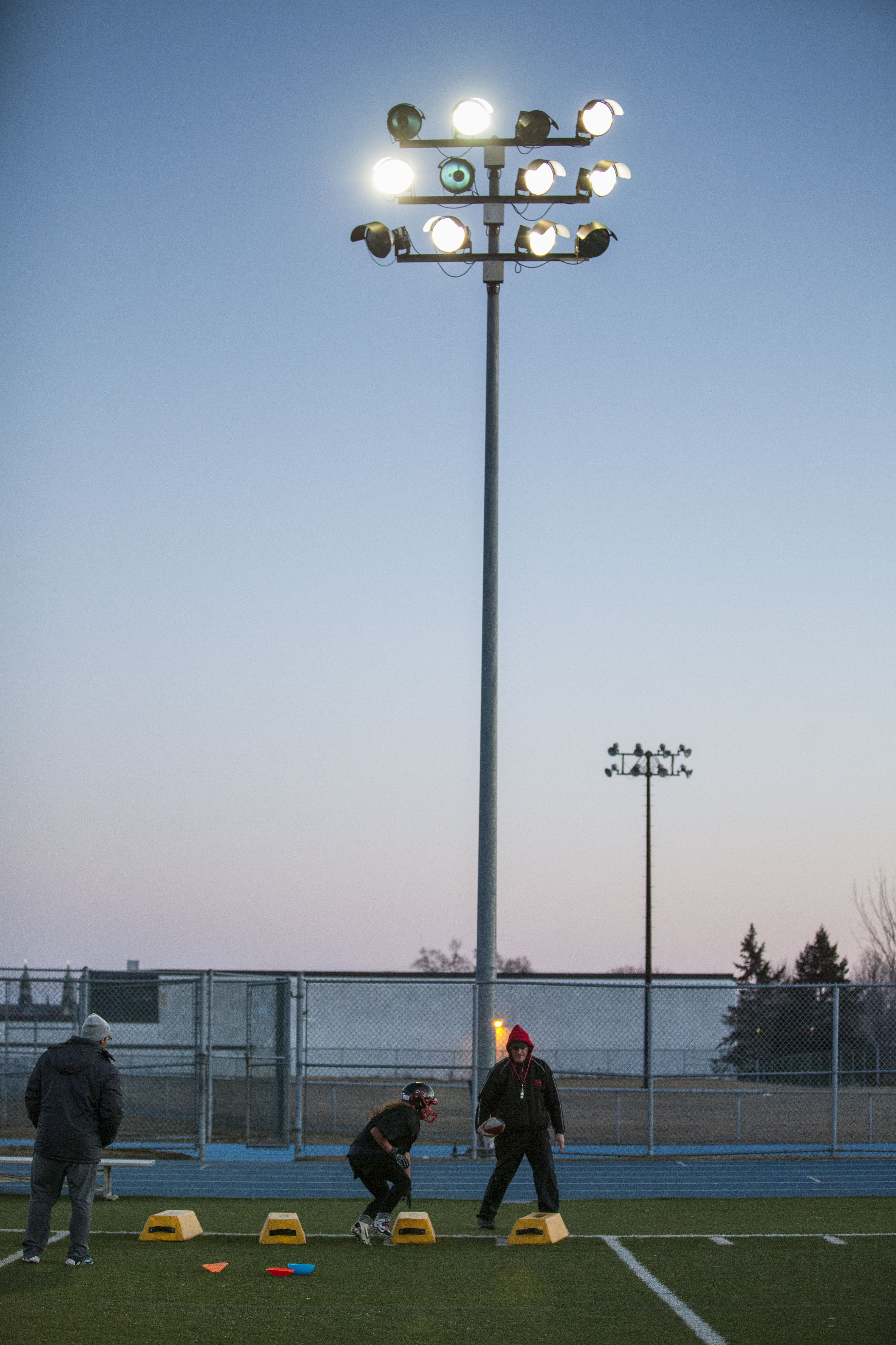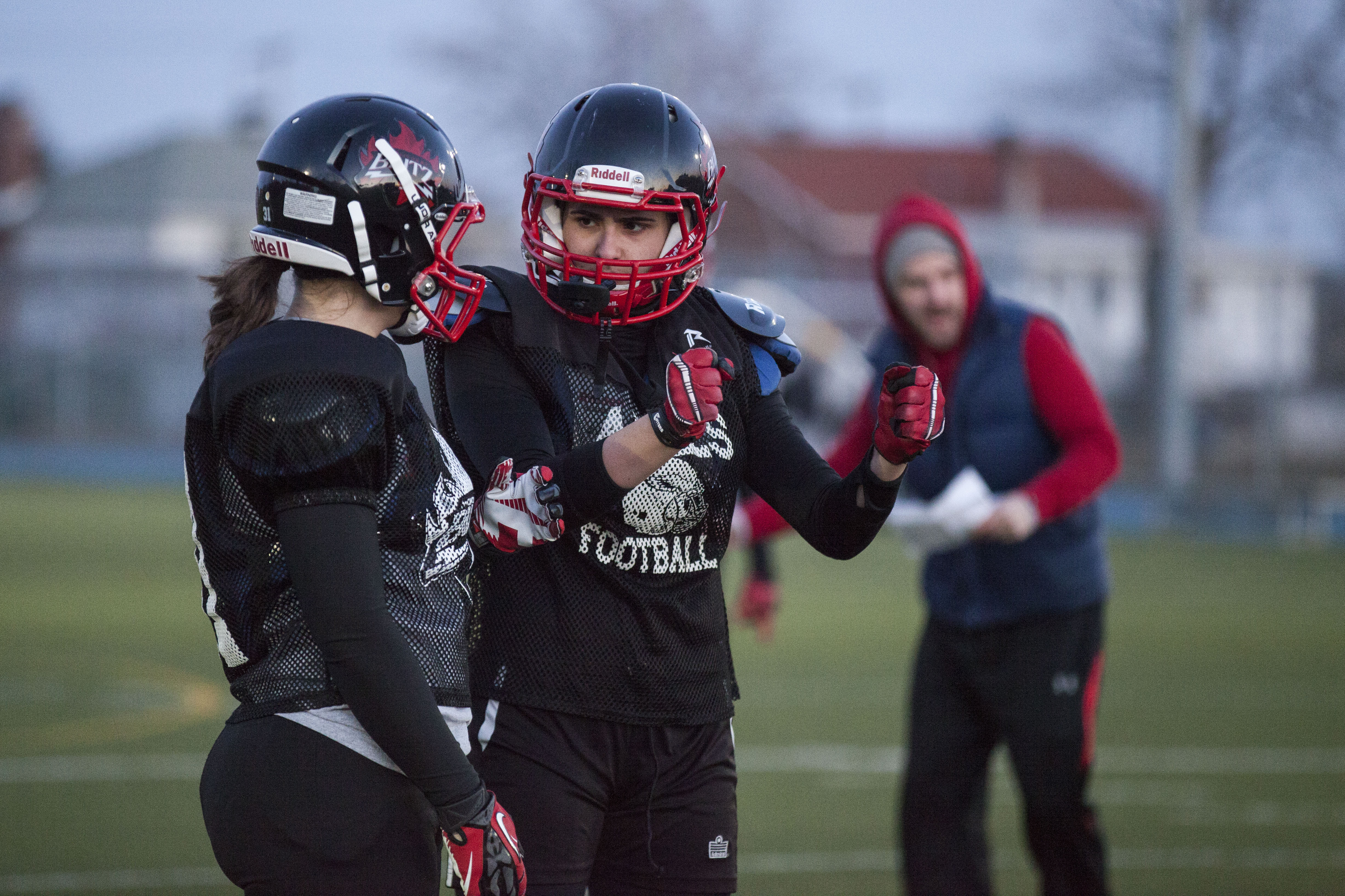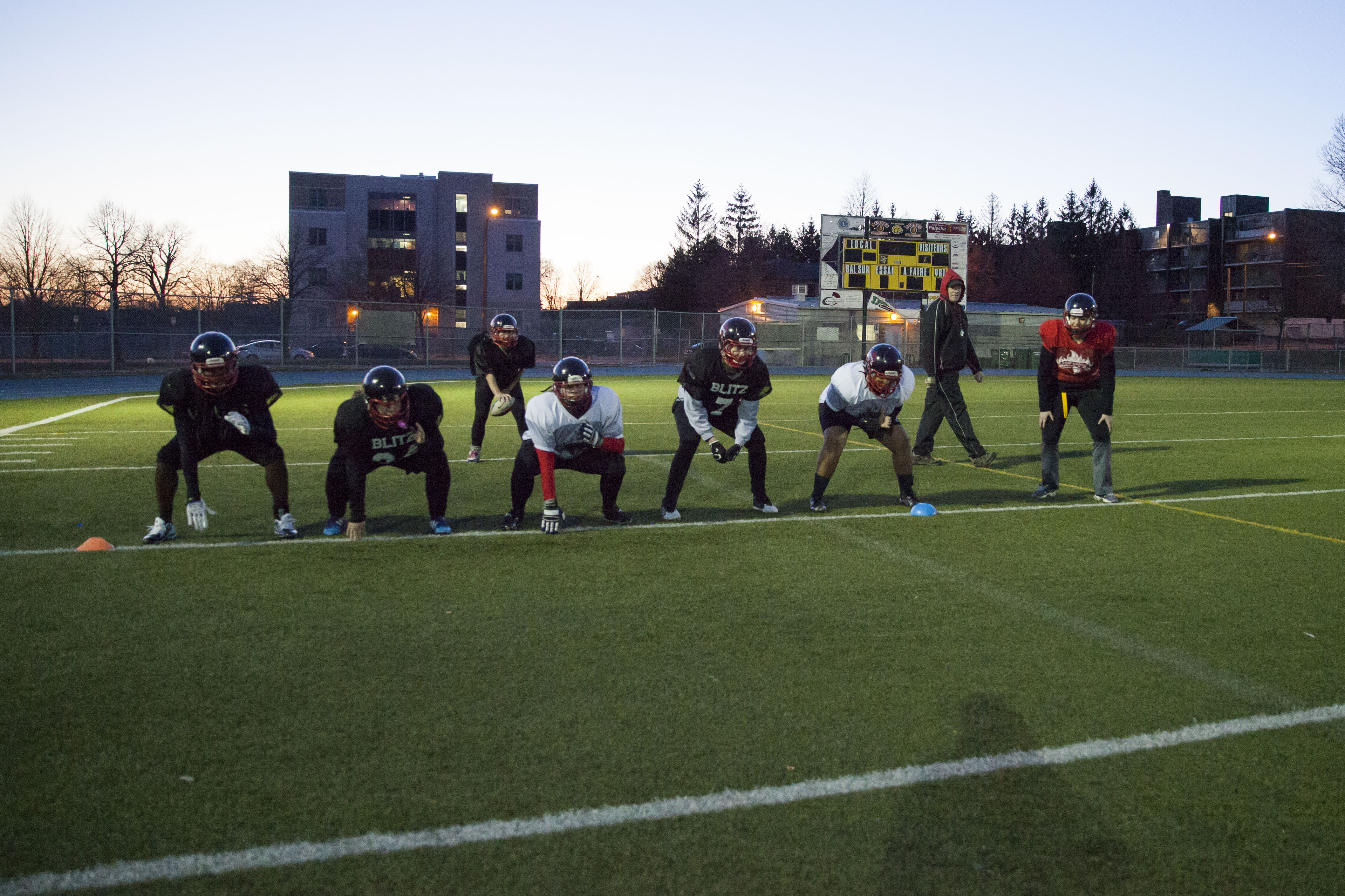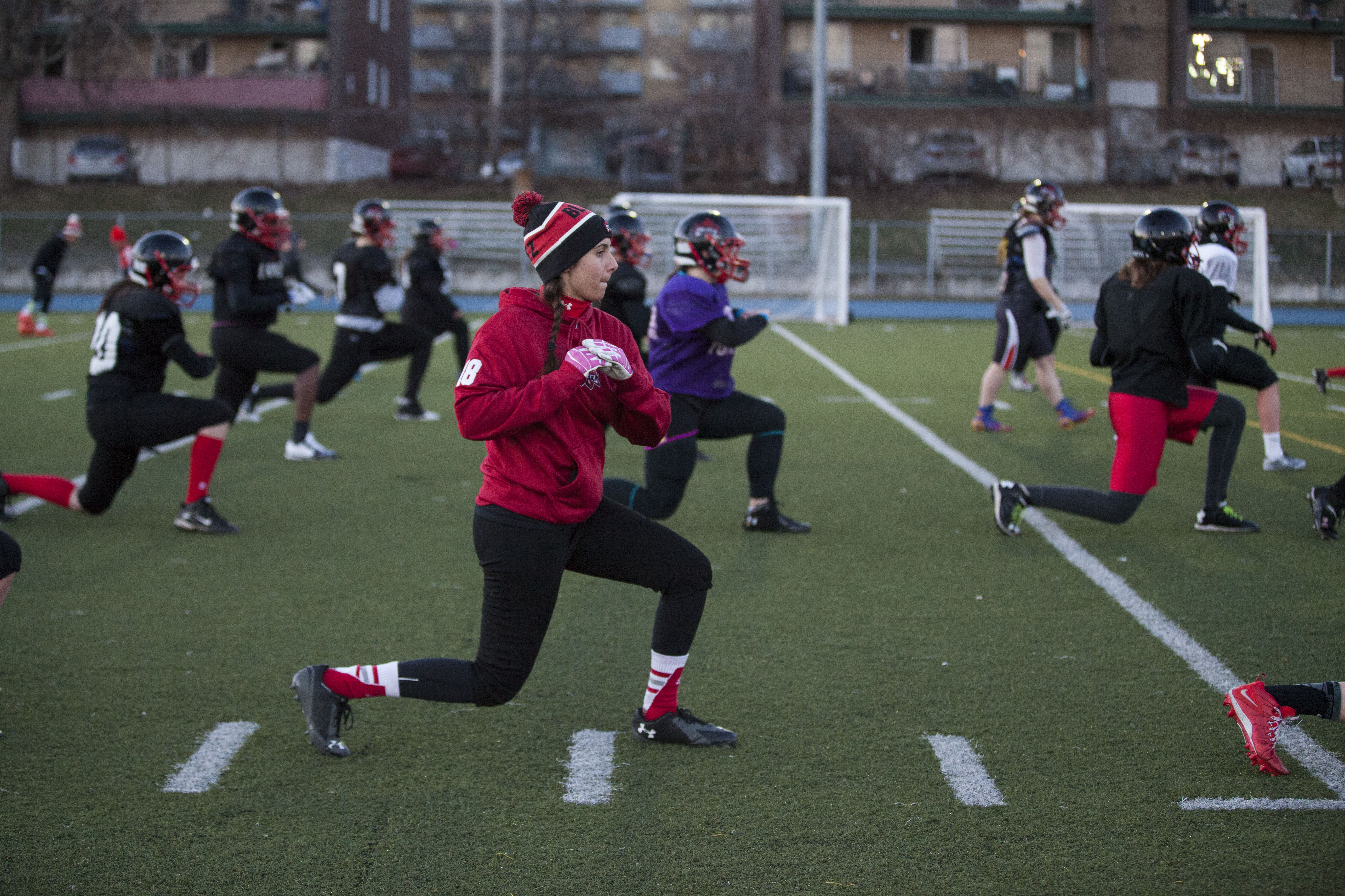 Dans le petit vestiaire de l’école Dalbé-Viau de Lachine se prépare la seule équipe de football compétitif féminin du Québec, le Blitz de Montréal.