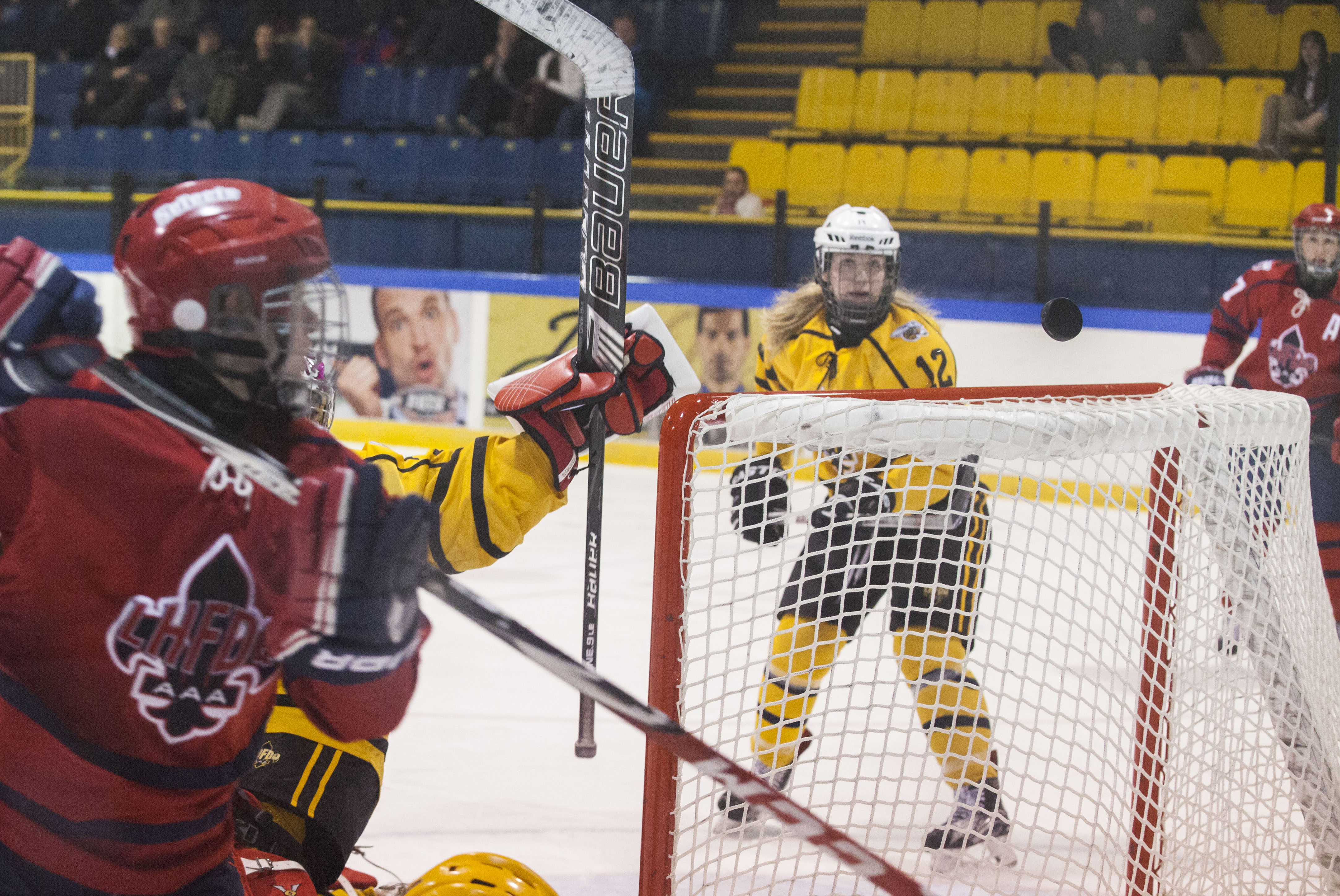 Chez les Midget AAA, les Honey Bees du Sud ont raflé les honneurs aux Warriors de l’Ouest, le 14 avril, en ouverture du tournoi. Cette ligue à part, du plus haut niveau, inclut seulement quatre équipes qui regroupent les meilleures hockeyeuses du Québec.