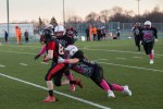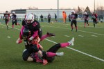La partie s’est terminée à la noirceur au compte de 48 à zéro pour l’équipe locale. La quart-arrière Maude Lacasse s’est démarquée en complétant onze de ses treize passes, pour un gain total de 166 verges. Annabelle Chevrier a capté six de celles-ci, marquant trois touchés.