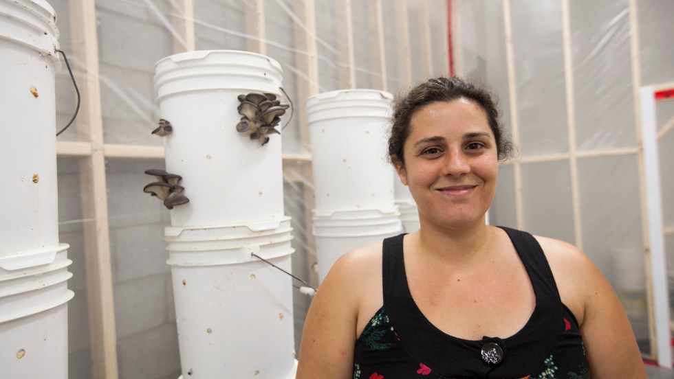 Deux fermières urbaines ont loué un entrepôt dans le secteur industriel pour y faire pousser des champignons, culture inusitée à Montréal. Depuis le mois de juin, les agricultrices ont récolté