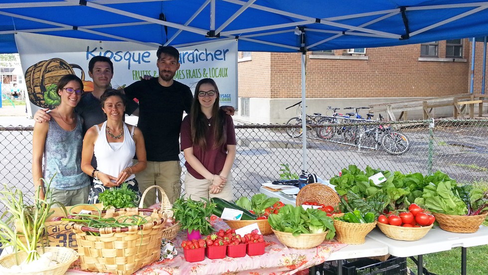 Les résidents de Mercier peuvent se procurer des fruits et légumes frais, cultivés dans le quartier, grâce aux kiosques maraîchers et au vélo-marché mis en place par l’organisme Y’a quelqu’un