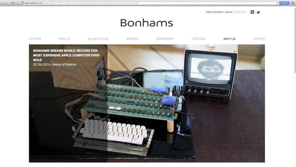 L’un des premiers ordinateurs Apple jamais construits a été vendu pour 905 000$ à New York, un record pour une « antiquité » informatique, a indiqué la maison d’enchères Bonhams. L’ordinateur Apple-1,