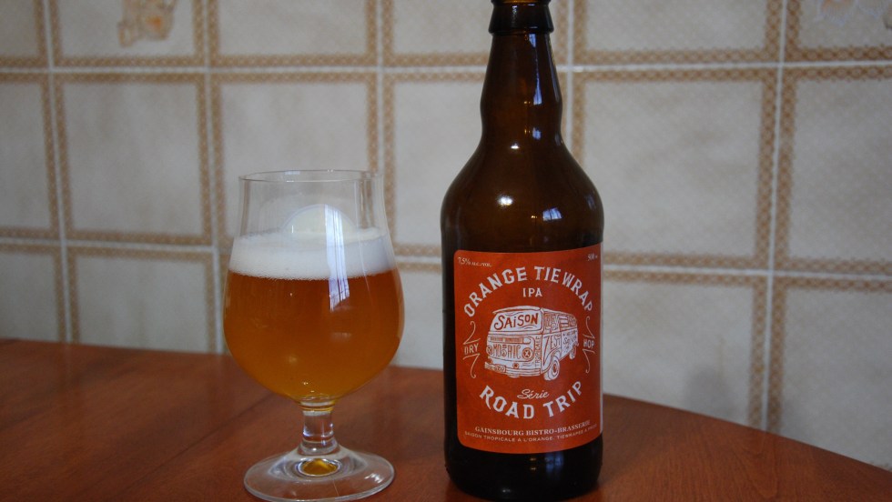 Orange tie wrap – Gainsbourg Gatineau (Outaouais) Cette bière est très rafraîchissante malgré ses 7,5 % d’alcool. Elle a un nez très floral, avec beaucoup d’agrumes. Le zeste d’orange et de