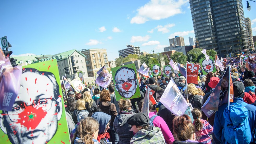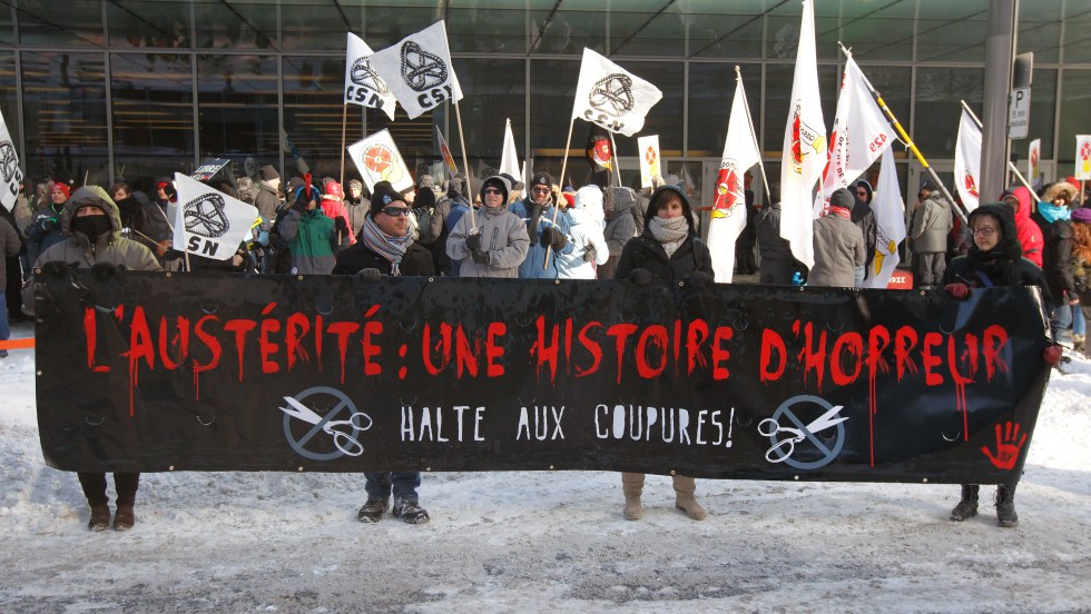 Des groupes sociaux promettent une quarantaine d’interventions partout au Québec – dont des manifestations et des blocages – dans le cadre de la semaine nationale d’actions contre les mesures d’austérité,