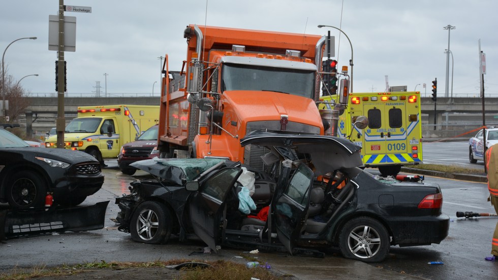 Une fillette d’environ 10 ans prenant place à bord d’un véhicule a subi des blessures au bas du corps à la suite d’un accident impliquant un camion-benne et l’automobile dans