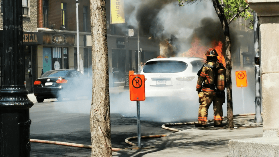 Un VUS blanc situé sur la rue Sainte-Catherine, près de l’intersection Plessis, a été la proie des flammes dans le Village en début d’après-midi.