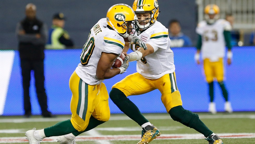 WINNIPEG — John White a obtenu deux touchés au sol et les Eskimos d’Edmonton ont vaincu les Blue Bombers de Winnipeg 40-26, vendredi. White, qui est redevenu le porteur de