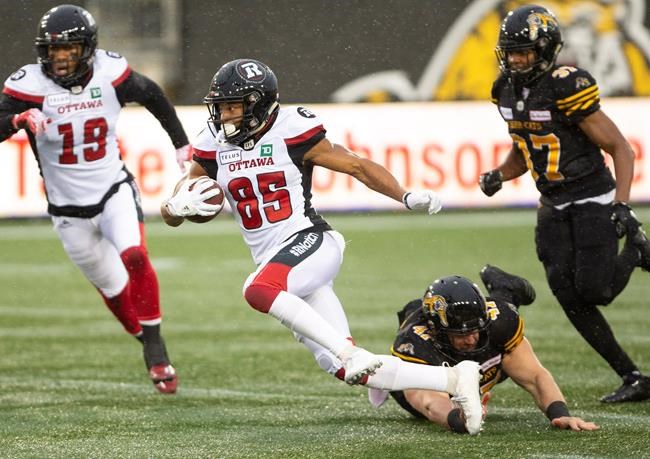 HAMILTON — Trevor Harris a lancé trois passes de touché et le Rouge et Noir d’Ottawa s’est assuré du titre de la section Est en battant les Tiger-Cats de Hamilton