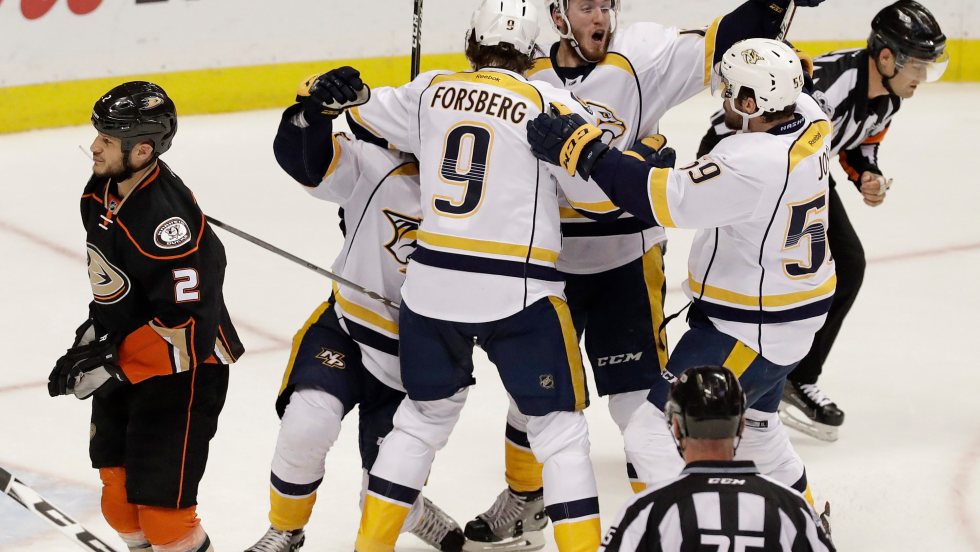 ANAHEIM, Calif. — Pontus Aberg a profité de l’absence des joueurs de centre Ryan Johansen et Mike Fisher pour laisser son empreinte dans la finale de l’Association Ouest. Aberg a
