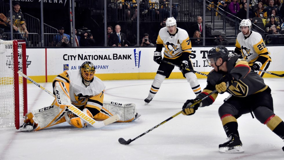 LAS VEGAS — Jonathan Marchessault a réussi un deuxième tour du chapeau en carrière pour mener les Golden Knights de Las Vegas vers un gain de 7-3 devant les Penguins
