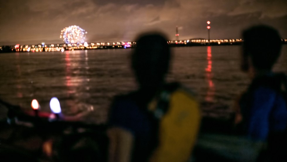 Une dizaine de personnes se sont donné rendez-vous sur le fleuve Saint-Laurent pour apprécier les premiers feux d’artifice de La Ronde de la saison, samedi. Des balades guidées en kayak
