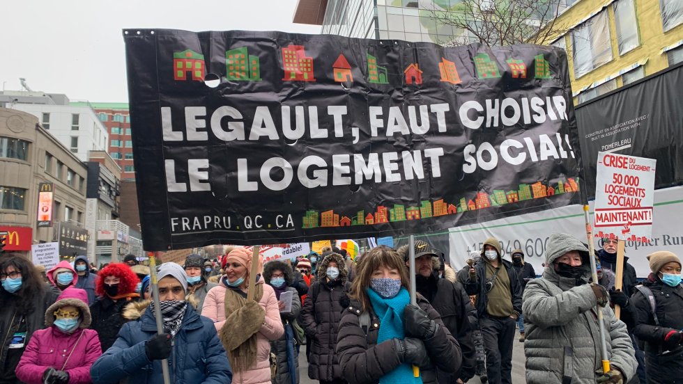 Le FRAPRU et d'autres organismes ont manifesté samedi à Montréal pour revendiquer des investissements immédiats dans le logement social.